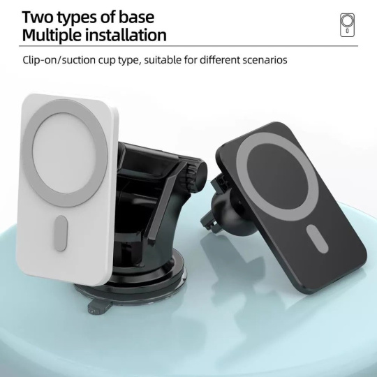 Kvalitní výkonná bezdrátová magnetická nabíječka do auta s podporou Apple MagSafe. Vybavená dvěma držáky, zvolit tak můžete buď variantu do ventilace, nebo otočný a výsuvný držák s přísavkou.
