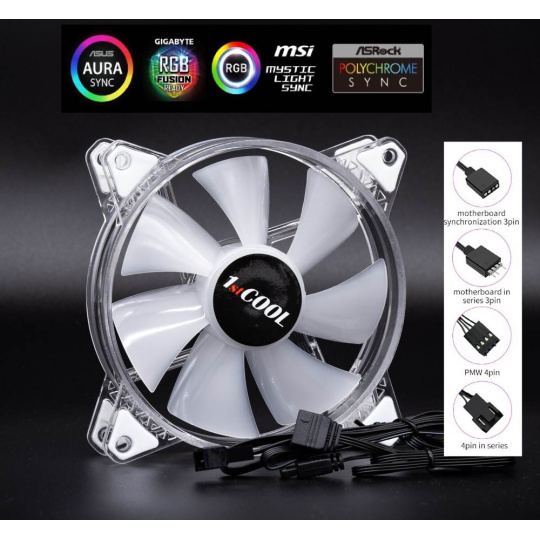 1stCOOL Ventilátor AURA EVO CRYSTAL, 120mm, ARGB