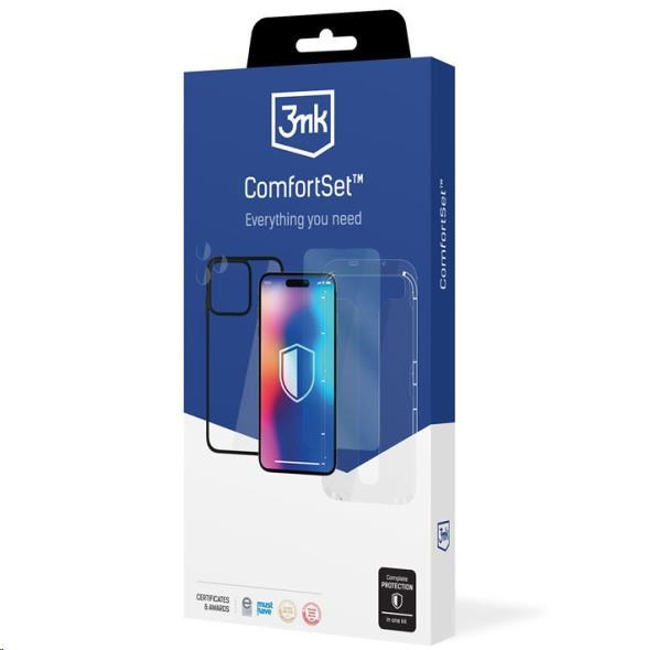 Comfort Set 4in1 je profesionální sada pro samostatné provedení komplexní ochrany chytrého telefonu. Obsahuje vlajkové produkty 3mk Protection: obal Satin Armor Case+, hybridní sklo Resilient Glass na objektiv foťáku Lens Protection, tvrzené sklo na displej telefonu s tvrdostí 9H a jednorázový aplikátor pro instalaci skla. Díky sadě Comfort Set 4in1 ochráníte svůj chytrý telefon, aniž byste museli někam chodit. Navíc se nebudete ani příliš trápit s instalací skla – je to velmi jednoduché a zvládnete to za několik minut!