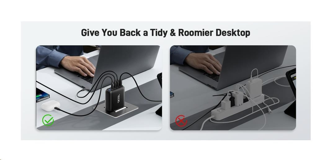 ACER Adapter 100W PD GaN charger,USB-C,USB-A,EU plug,Black