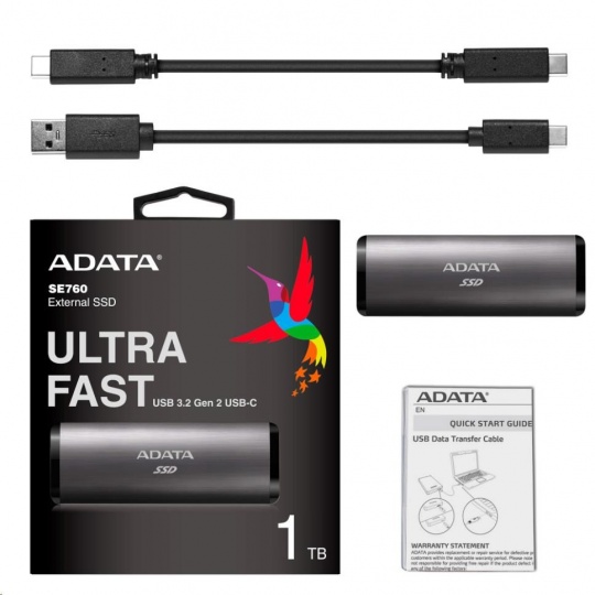 Externí SSD SE760 kombinuje elegantní estetiku s vysoce rychlým výkonem. Navíc SSD má čistý a jednoduchý design, který je charakterizován robustní kovovou schránkou a čistým do detailu vybroušeným povrchem. Díky využití rozhraní USB 3.2 Gen 2 dosahuje SE760 rychlosti až 1000 MB/s.