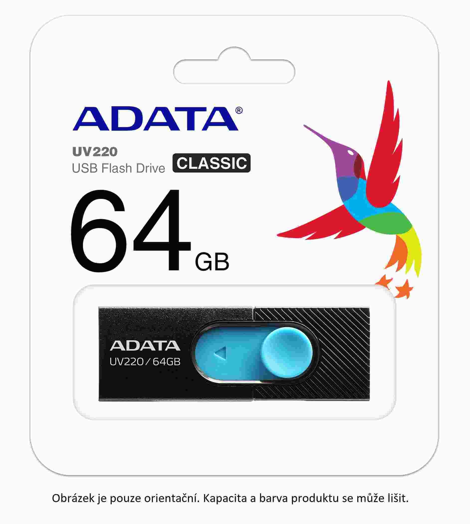ADATA Flash Disk 32GB UV220, USB 2.0 Dash Drive, černá/modrá
