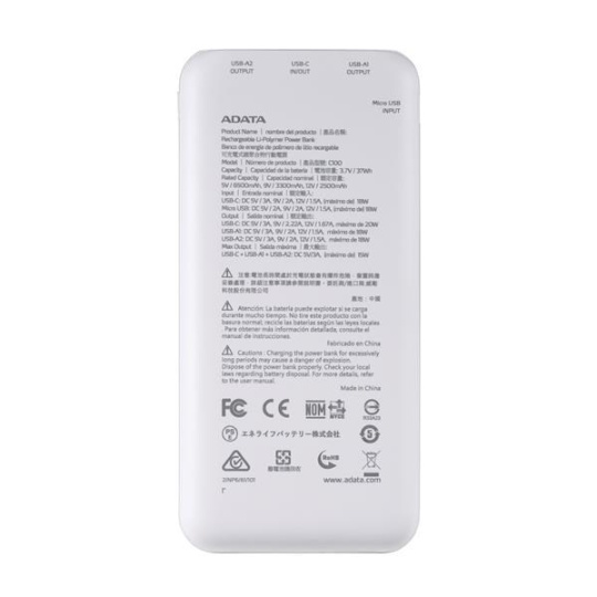 Powerbanka C100 má velkorysou kapacitu 10 000 mAh a využívá vysoce účinné lithium-polymerové baterie. Dokáže nabíjet až tři mobilní zařízení současně a podporuje rychlé nabíjení PD/QC 20W, zatímco jeho vestavěný LED indikátor nabití vám připomene, když je baterie vybitá, pomocí blikajícího varování. Lehký a tenký, snadno se nosí s vaším mobilním telefonem a je k dispozici ve stylové černé nebo bílé barvě. C100 také obsahuje několik mechanismů ochrany obvodů, které poskytují nepřetržité nabíjení a větší klid!