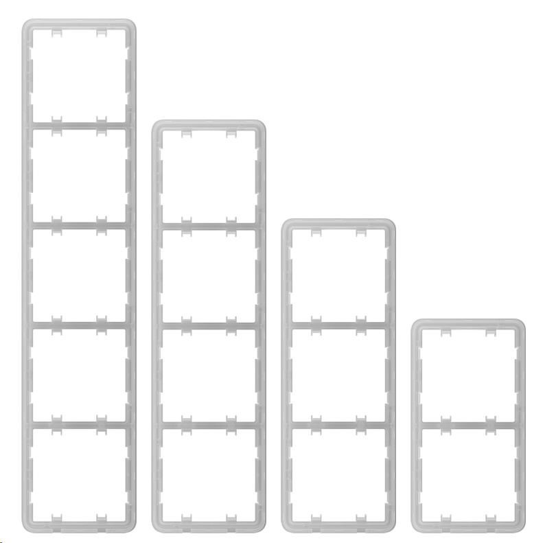 Frame pro LightSwitch a Cover je rámeček, který umožňuje snadnou instalaci více zařízení LightSwitch vedle sebe. Tyto rámečky jsou dostupné v horizontální i vertikální verzi a umožňují kombinovat různé typy LightSwitch a dalších zařízení do jednoho elegantního celku. Instalace je mechanická, bez nutnosti použití nářadí, což zajišťuje rychlou a jednoduchou montáž.