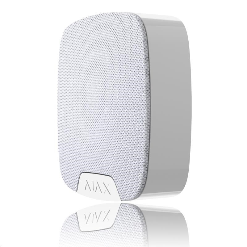 Ajax HomeSiren je bezdrátová siréna určená pro použití ve vnitřních prostorech. Intenzitu akustické signalizace lze libovolně nastavit v rozmezí 81 až 97 dB. Siréna navíc disponuje konektorem pro připojení externí LED signalizace. Díky unikátnímu protokolu Jeweller může komunikovat s Ajax Hubem až na vzdálenost 2 000 m v otevřeném prostoru.