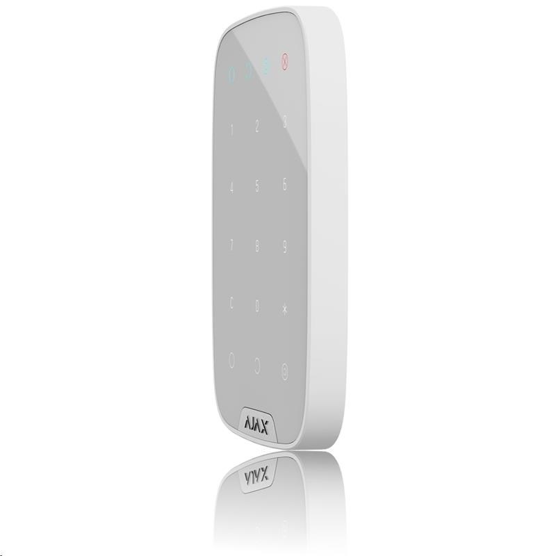 Bezdrátová dotyková klávesnice - bílá. Ajax KeyPad je bezdrátová klávesnice umožňující jednoduché ovládání zabezpečovacího systému zadáním číselného hesla či stisknutím tlačítka. V krizové situaci lze rovněž diskrétně spustit tichý poplach..... více