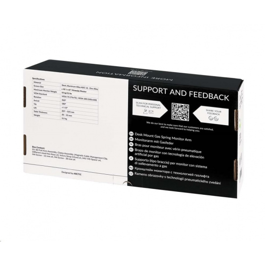 - FULL MOTION FOR MORE COMFORT - Thanks to the approved gas lift technology, the monitor can be moved completely freely in all directions, even after installation. This makes it child's play to pull the monitor up, move it away or completely realign the height, depth and tilt.