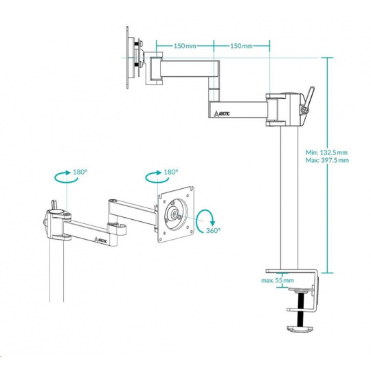 • SIMPLE AND QUICK ASSEMBLY - Thanks to the table clamp, the monitor arm can be placed freely and easily on the edge of the table. The arm is completely pre-assembled and is simply placed on the rod. Assembly or later repositioning is therefore child's play and can be done quickly.