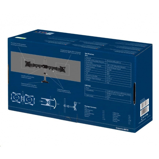 ARCTIC stolní držák Z2 Pro (Gen3) pro 2x LCD do 34", nosnost 2x15kg, 4x USB HUB, černý (black)