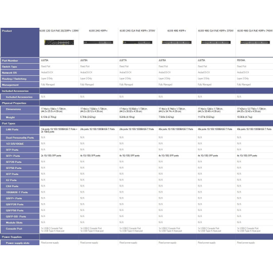 Aruba 6100 48G Class4 PoE 4SFP+ 370W Switch (JL675A))