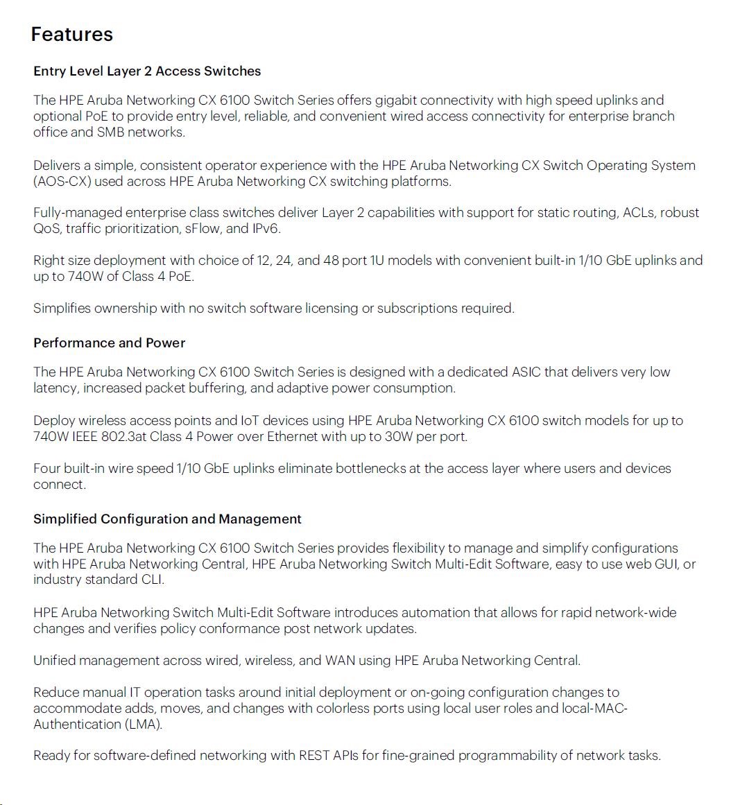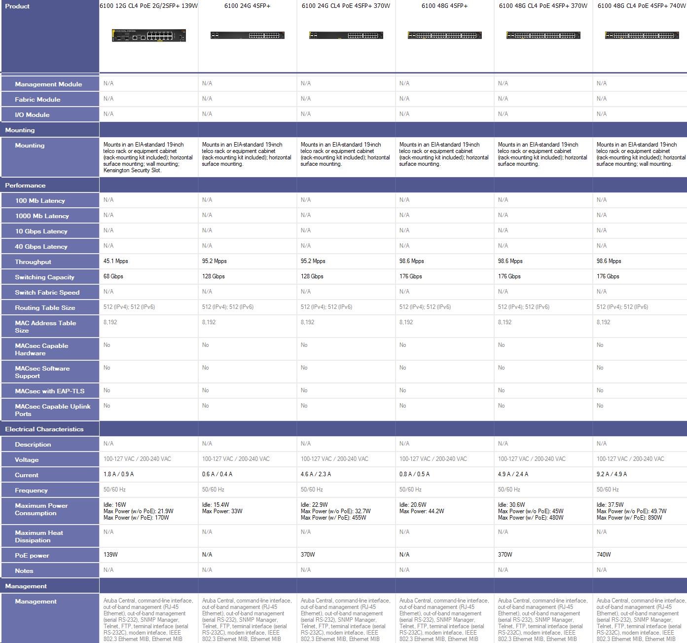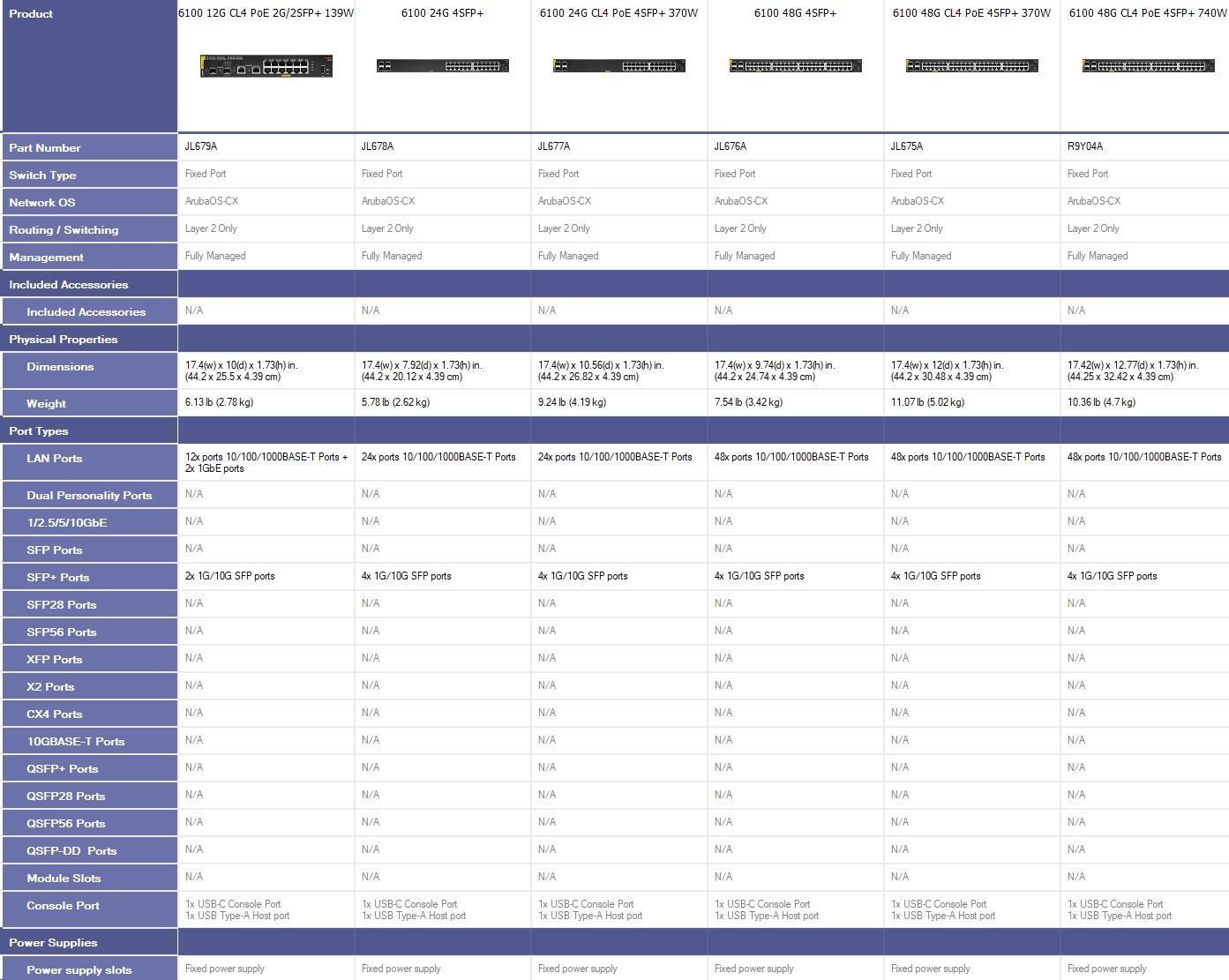 Aruba 6100 48G Class4 PoE 4SFP+ 370W Switch (JL675A))