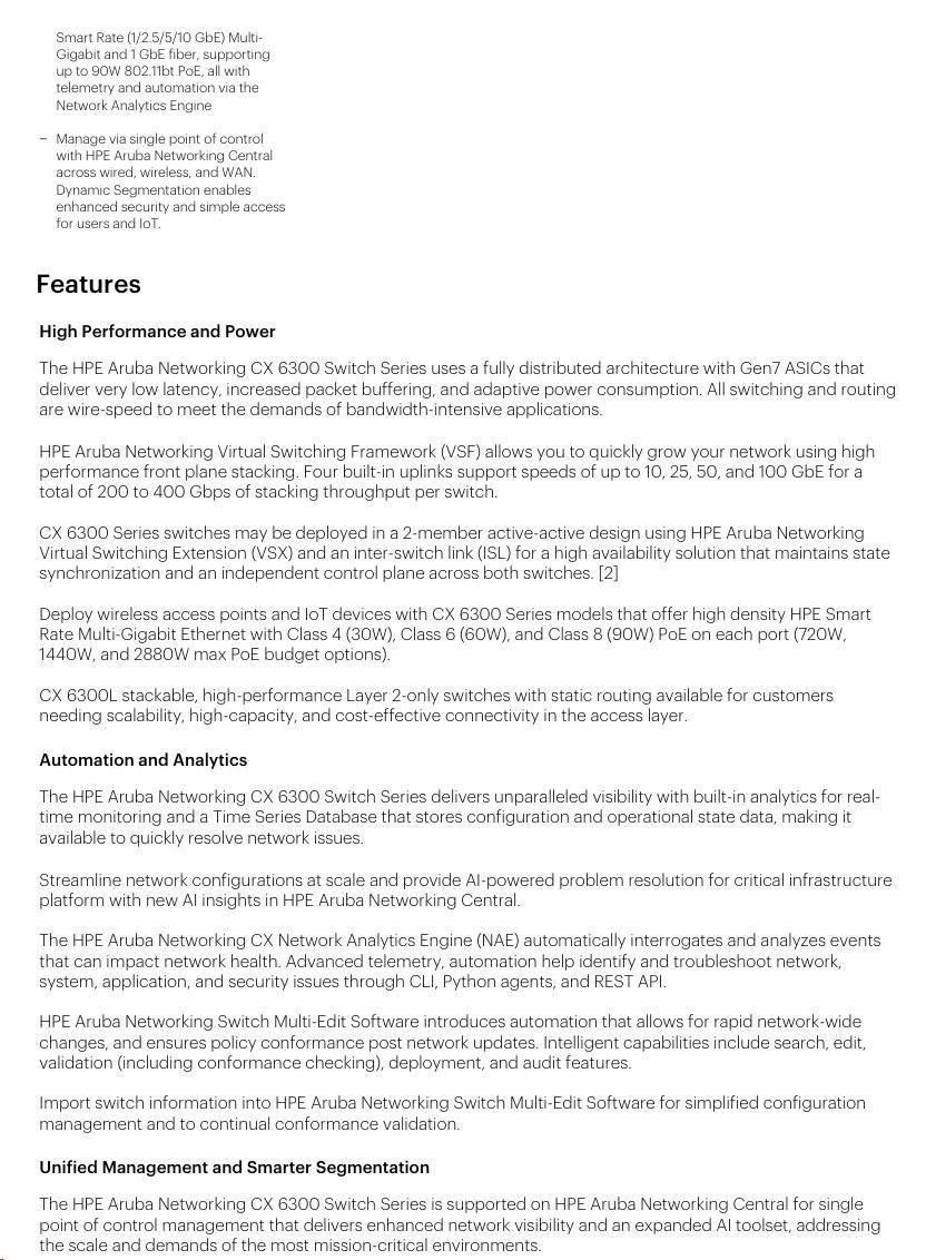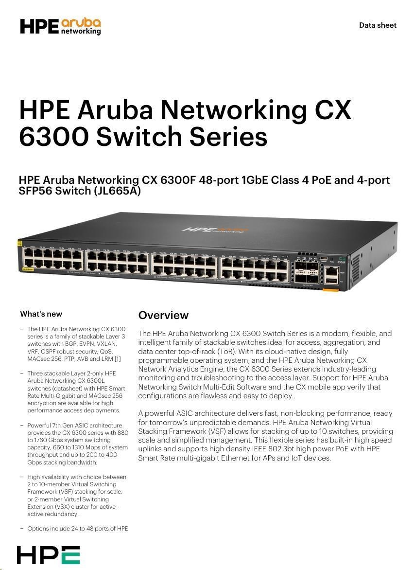 HPE Aruba Networking CX 6300F 48-port 1GbE Class 4 PoE and 4-port SFP56 Switch