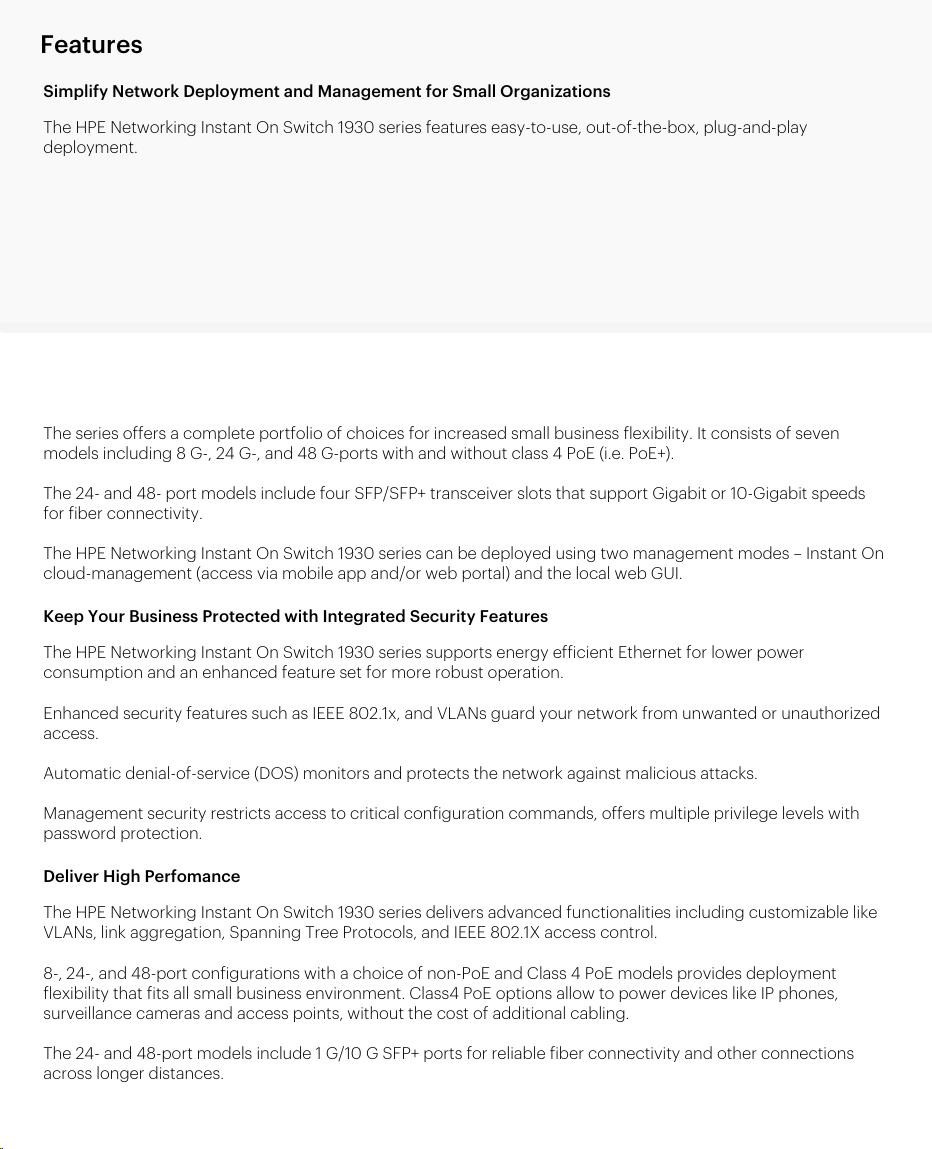HPE Networking Instant On Switch 48p Gigabit 4p SFP+ Fanless 1930 JL685A