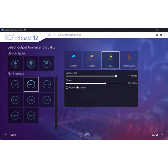 Díky výkonným funkcím Ashampoo Music Studio 12 dostanete ze své hudební sbírky to nejlepší! Osm praktických modulů pokrývá prakticky vše, co milovníci hudby na počítači potřebují. Ať už chcete upravovat, vypalovat nebo stříhat své oblíbené skladby – s Ashampoo Music Studio 12 to zvládnete rychle a snadno. Nahrávání ze Spotify, Deezer, Amazon Music a mnoha dalších formátů! Převod do jiných kompatibilních formátů, vytváření mixtapů pro příští párty nebo playlistů pro jakékoli audio zařízení! Uspořádejte si svou hudební sbírku, tiskněte obaly, ripujte CD a mnoho dalšího!