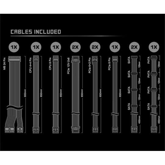 | ATX 20+4pin Konektor | 1x / 1x (600 mm) |