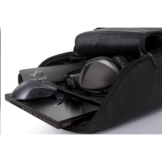 Lehký herní batoh ROG Ranger BP1500 kombinuje futuristický design s ikonickými kybertextovými prvky a logem značky ROG. Vyrobený z elegantního a odolného 900D polyesteru odolávajícího vodě a odolného proti poškrábání. Jeho design je inspirován armádním vybavením a rohové kryty zabraňují roztřepení materiálu, což zajišťuje, že váš notebook v batohu ROG Ranger BP1500 zůstane chráněný před každodenními nárazy.