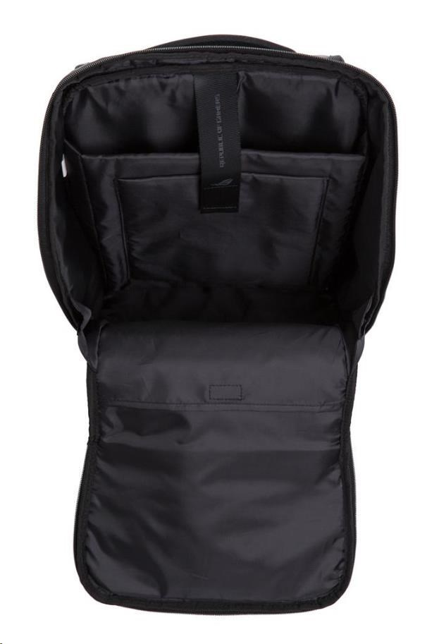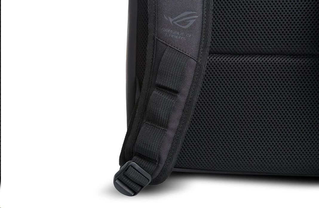Lehký herní batoh ROG Ranger BP1500 kombinuje futuristický design s ikonickými kybertextovými prvky a logem značky ROG. Vyrobený z elegantního a odolného 900D polyesteru odolávajícího vodě a odolného proti poškrábání. Jeho design je inspirován armádním vybavením a rohové kryty zabraňují roztřepení materiálu, což zajišťuje, že váš notebook v batohu ROG Ranger BP1500 zůstane chráněný před každodenními nárazy.