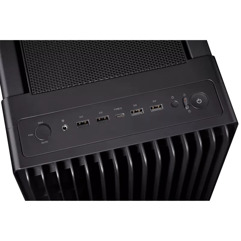 • Vynikající proudění vzduchu: 15,5 mm mřížka na předním panelu se 45% pórovitostí, dva extra silné přední ventilátory 200 x 38 mm pro maximální nasávání vzduchu a 140 mm zadní výfukový ventilátor