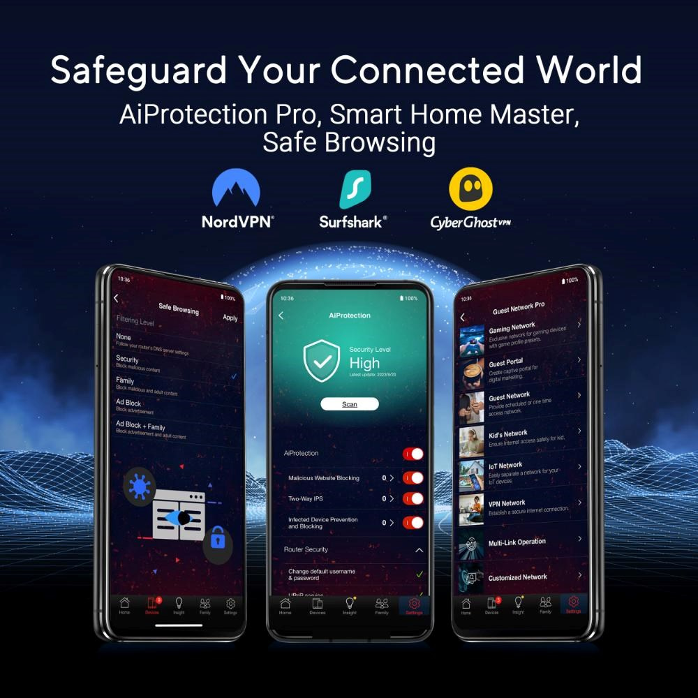 ROG Strix GS-BE18000 je dokonalý herní router, který je určen pro ty, kteří vyžadují dokonalost. Bleskurychlé rychlosti až 18 000 Mb/s poháněné špičkovou třípásmovou WiFi 7 a 4x4 MIMO, plus kombinovaná kapacita kabelového připojení 20G, zajišťují bezproblémové hraní s nízkou latencí na všech platformách. Exkluzivní herní síť ROG přináší také průlomovou akceleraci her pomocí jednoho klepnutí na SSID, zatímco trojúrovňové zabezpečení sítě zabezpečuje a zjednodušuje váš připojený svět.