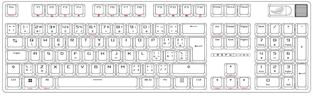 - Unikátní mezerník s motivem ROG: UV potažený mezerník se speciálním označením ROG a třemi RGB LED diodami na spodní straně