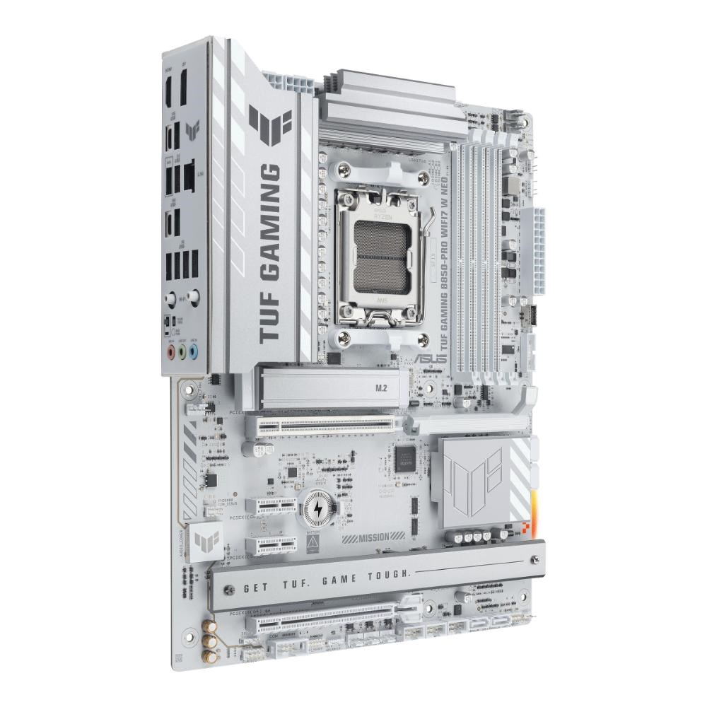 ASUS TUF GAMING B850-PRO WIFI7 W NEO takes all the essential elements of the latest AMD Ryzen™ processors and combines them with game-ready features and proven durability. Engineered with an upgraded power solution and a comprehensive cooling system, this motherboard goes beyond expectations with rock-solid and stable performance for marathon gaming. TUF GAMING motherboards also undergo rigorous endurance testing to ensure that they can handle conditions where others may fail. This platform delivers the power and connectivity that advanced AI PC applications demand.