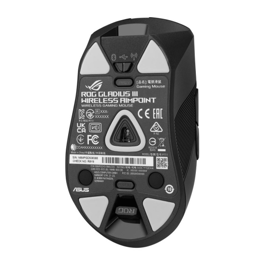 - Push-Fit Switch Socket II: Vyměnitelný design spínače pro snadné přizpůsobení; Gladius III Wireless AimPoint obsahuje mikrospínače ROG a je kompatibilní s dalšími 3pinovými mechanickými a 5pinovými optickými mikrospínači