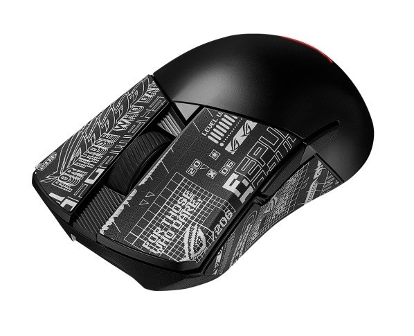 - Protiskluzová páska na rukojeť myši se vzorem ROG: Poskytuje uživatelům bezpečnější uchopení a přidaný kousek šmrncu