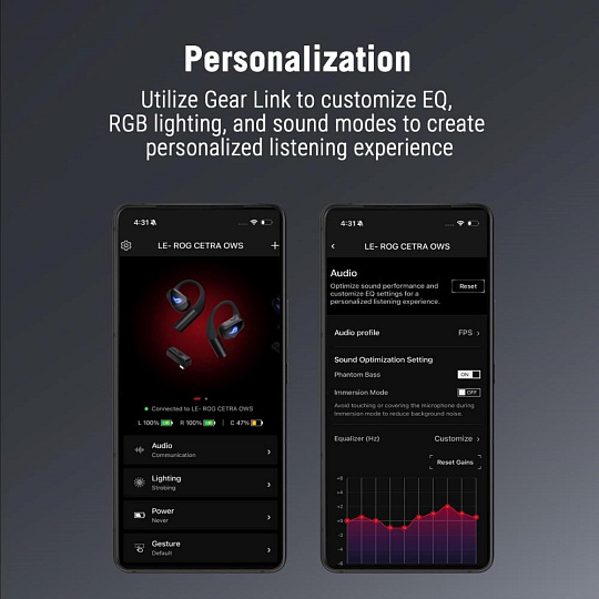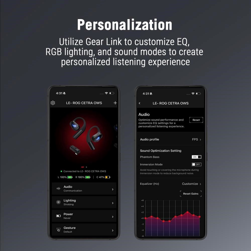 ASUS sluchátka ROG Cetra Open Wireless, BT + RF 2.4 GHz, RGB, černá