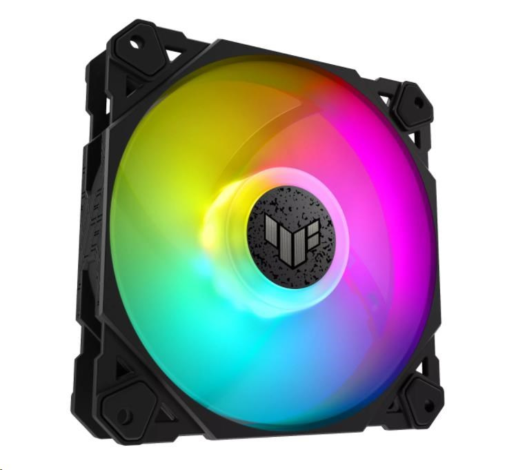 TUF Gaming TF120 ARGB chassis fan delivers high performance and durability in a rainbow of color.