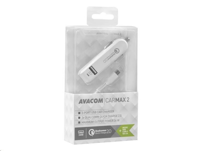 AVACOM CarMAX 2 nabíječka do auta 2x Qualcomm Quick Charge 2.0, bílá barva (micro USB kabel)