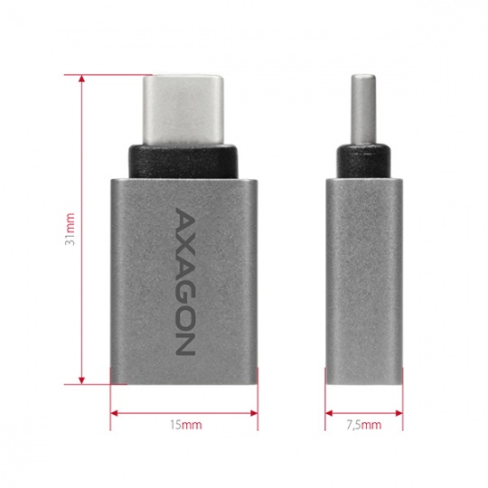 AXAGON RUCM-AFA, redukce USB-C (M) -> USB-A (F), USB 3.2 Gen 2, 3A, ALU