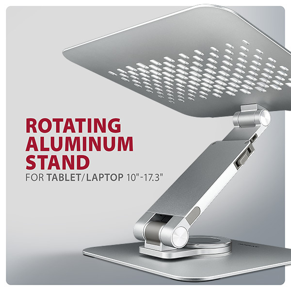 AXAGON STND-LR, hliníkový stojan pro notebooky 10"-17.3" s nastavitelnou výškou, úhlem a 360° rotací, šedý