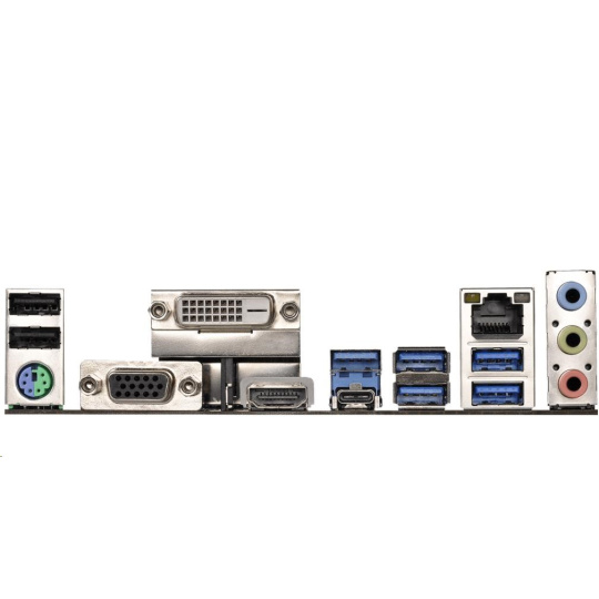 | Rear panel I/O | 1 x PS/2 Mouse/Keyboard Port 1 x D-Sub Port 1 x DVI-D Port 1 x HDMI Port 2 x USB 2.0 Ports (Supports ESD Protection) 1 x USB 3.1 Gen1 Type-C Port (Supports ESD Protection) 5 x USB 3.1 Gen1 Ports (Supports ESD Protection) 1 x RJ-45 LAN Port with LED (ACT/LINK LED and SPEED LED) HD Audio Jacks: Line in / Front Speaker / Microphone |