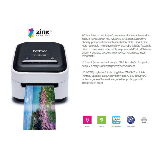 Barevná fototiskárna VC-500W - ZINK Zero-Ink Full Colour Printing Technology