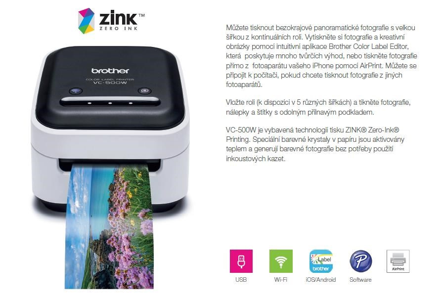 Barevná fototiskárna VC-500W - ZINK Zero-Ink Full Colour Printing Technology