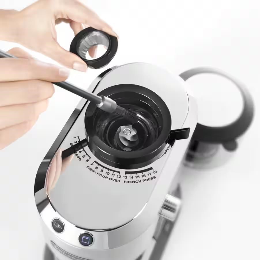 Regulátor mletí lze nastavovat v 18 stupních,takže máte naprostou kontrolu nad hrubostí mletí a můžete si svoji kávu podle libosti přizpůsobit.