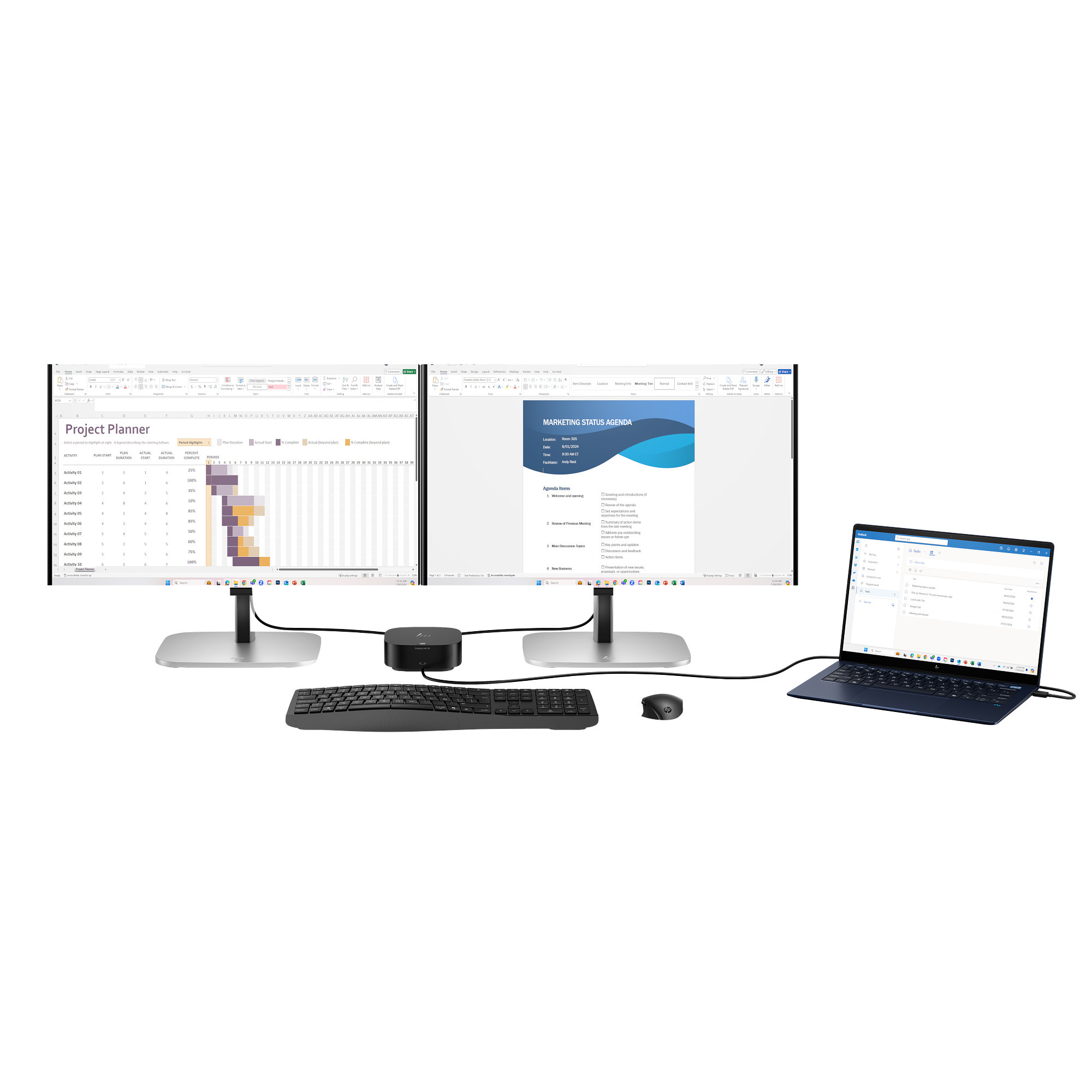 [3] Dok se prodává samostatně. Oba monitory HP Series 5 Pro 24" WUXGA – 524pn musí být připojeny do doku, aby bylo možné vytvořit sestavu dvou displejů.