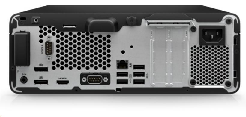 Vpředu 1x kombinovaný konektor pro sluchátka/mikrofon; 4x SuperSpeed USB Type-A s přenosovou rychlostí signálu 10 Gb/s; 1x SuperSpeed USB Type-C® s přenosovou rychlostí signálu 20 Gb/s Zadní 1x zvukový vstup/výstup; 1x RJ-45; 1x HDMI 1.4; 3x SuperSpeed USB Type-A s přenosovou rychlostí signálu 5 Gb/s; 2x DisplayPort™ 1.4; 3x USB Type-A s přenosovou rychlostí signálu 480 Mb/s 1x HDMI 2.0