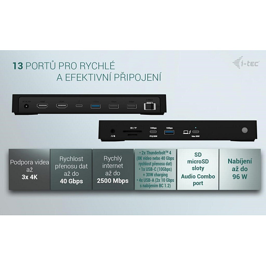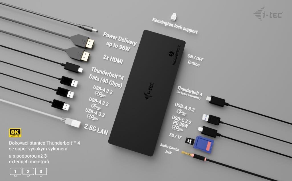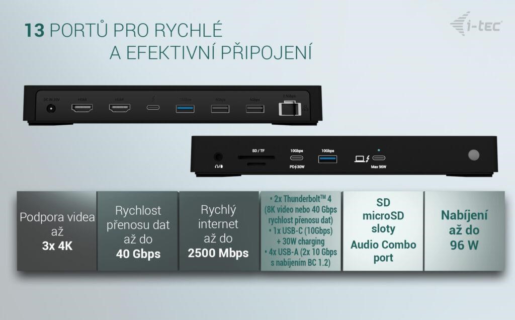BAZAR - i-tec Thunderbolt4 3x Display Docking Station, Power Delivery 96W / rozbaleno