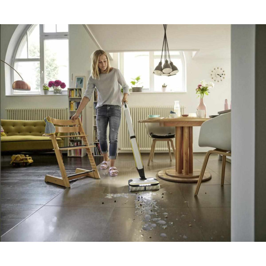 AKU podlahová myčka FC 7 Premium odstraňuje suché i mokré každodenní nečistoty v jediném kroku. Před použitím myčky již není třeba vysávat, což šetří polovinu času uklízení*. Čtyřválcová technologie s protiběžným otáčením umožňuje rychlé a efektivní čištění s důkladným odstraňováním nečistot a vlasové filtry zajišťují skvělé sbírání vlasů. Podlahy jsou až o 20 % čistší než při úklidu s běžným mopem**, a to až k okraji. Tahání a zamotávání kabelů je minulostí, stejně jako obtížné tahání kbelíků s těžkou vodou – podlahová myčka disponuje 2 separátními nádržkami na čistou a špinavou vodu. Objem vody a rychlost otáčení válců lze nastavit ve dvou režimech čištění tak, aby se přizpůsobily podlaze. K dispozici je také funkce BOOST pro opravdu odolné nečistoty. Doba provozu baterie je 45 min, což vystačí na 135 m2. Podlahový stroj je vhodný pro všechny tvrdé podlahy (dlaždice, parkety, laminát, PVC, vinyl). Bílá premiová verze disponuje kromě bohatého příslušenství také LED diodou, kterou si lze posvítit pod nábytek. CHARAKTERISTICKÉ ZNAKY A VÝHODY Stírání je o 20 procent* čistší a pohodlnější než u mopu Systém dvou nádrží: Trvalé smáčení válečků z nádrže na čerstvou vodu, zatímco se nečistoty shromažďují v nádrži na odpadní vodu. Bez námahy: Žádné tahání kbelíku, ždímání hadrů nebo drhnutí povrchů. Válečky lze prát v pračce při 60 ° C. Snadné čištění zařízení Nádrž na odpadní vodu vhodná do myčky nádobí se vyprazdňuje bez kontaktu s nečistotami. Vybavení Lze nastavit rotaci válnce a objem vody Systém dvou nádrží 2 univerzální šedé válečky Sada 2 válečků na kámen Podlahový čistič pro kamenné podlahy RM 537 30 ml Podlahový čistič Universal RM 536 500 ml Čisticí a parkovací stanice Nabíječka baterií.