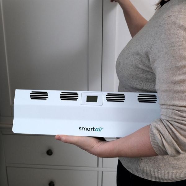 Díky mimořádně dlouhé ploše ventilátoru 42 cm vyhřívá rozdělovač tepla SmartAir celý obytný prostor rychle a energeticky úsporně. SmartAir nabízí také 2 různé režimy vytápění: