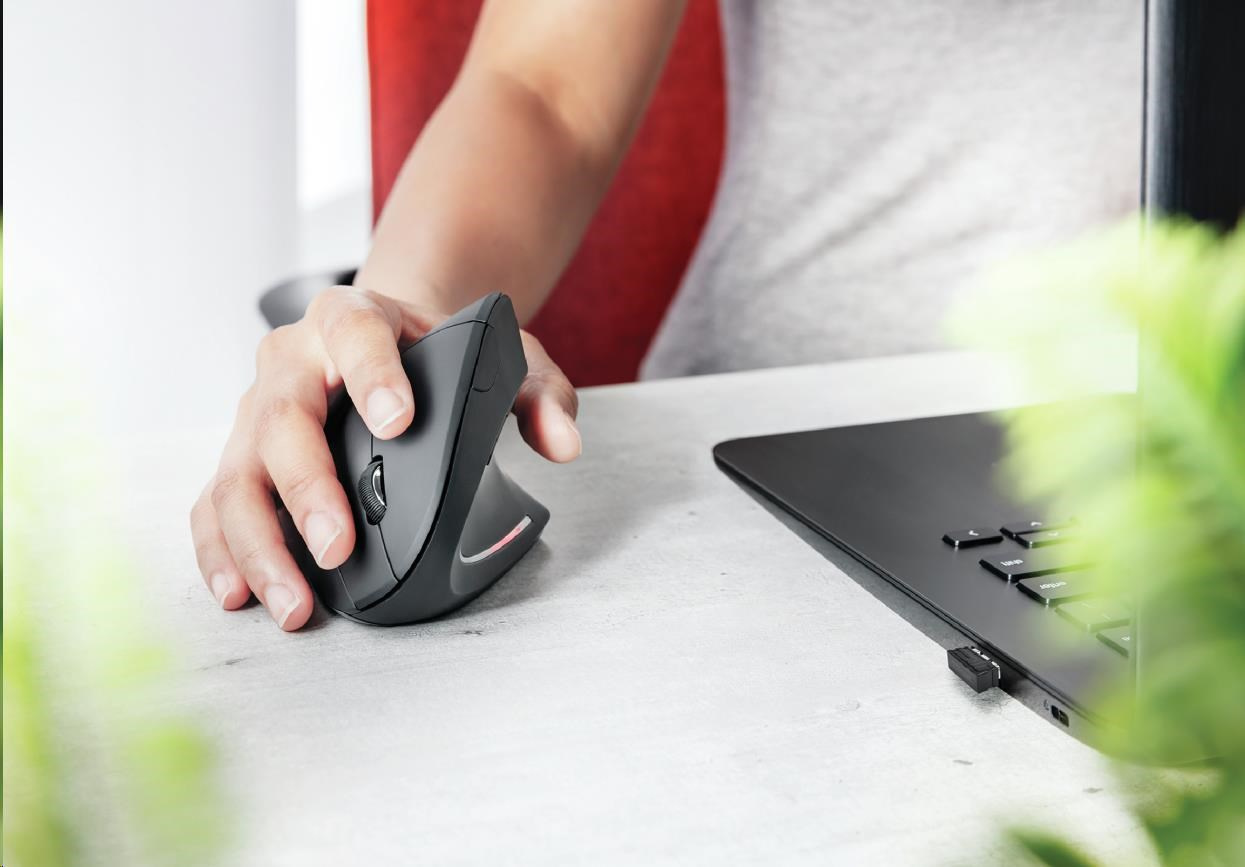 Wireless mouse with ergonomic vertical design to reduce arm and wrist strain