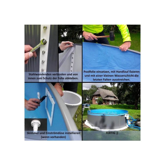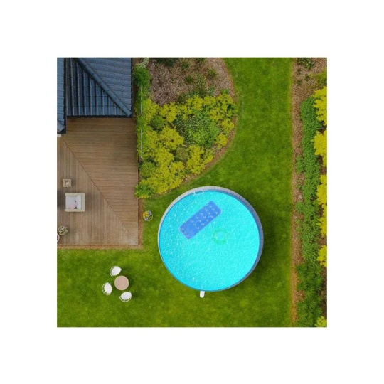 Nadzemní bazény Planet Pool s ocelovou stěnou jsou určeny pro celoroční použití. Odpadá tak potřeba bazén demontovat na podzim a znovu instalovat na jaře jako u sezónních bazénů s nafukovacím límcem či rámovou konstrukcí. Díky žárově pozinkované a nátěrem ošetřené ocelové stěně a mrazuvzdorné fólii je bazén připraven na všechny rozmary přírody. Tento bazén je velmi stabilní, pevný s dlouhou životností. Moderní ANTRACITOVÝ nátěr stěny bazénu + PÍSKOVÁ PVC závěsná folie. Bazén je vhodný pro instalaci na rovném podkladu s dostatečným odstupem od potenciálního spadu nečistot ze stromů a střech. UV stabilizace PVC folie zajišťuje je barevnou stálost a životnost. Tento bazén přestavuje osvědčenou koncepci bazénu a pozitivní historickou zkušenost. Bazén se instaluje pomocí spodních a horních lišt, do kterých se zasazuje ocelová stěna. Oba kraje stěny se propojí pomocí vnitřních a vnějších lišt a šroubů. Mrazuvzdorná folie se pomocí zalomení o horní část ocelové stěny zavěsí a vytvaruje do bazénu dle vizuálních požadavků. Folie je flexibilní a na míru vyrobena pro tento typ bazénu (není třeba žádných úprav). Pro montáž krok za krokem následujte pokyny v montážním návodu. Parametry: Tvar bazénu: kulatý tvar Rozměry bazénu: 350 x 90 cm Ocelová stěna: 0,3 mm UV stabilizovaná PVC fólie, tloušťka 0,2 mm, barva PÍSKOVÁ Barva bazénu: ANTRACITOVÁ Děrování pro standardní vestavěný skimmer a zpětnou trysku k dispozici Horní a podlahová lišta z plastu Bazén odpovídá evropské normě pro bazény EN 16562-2.