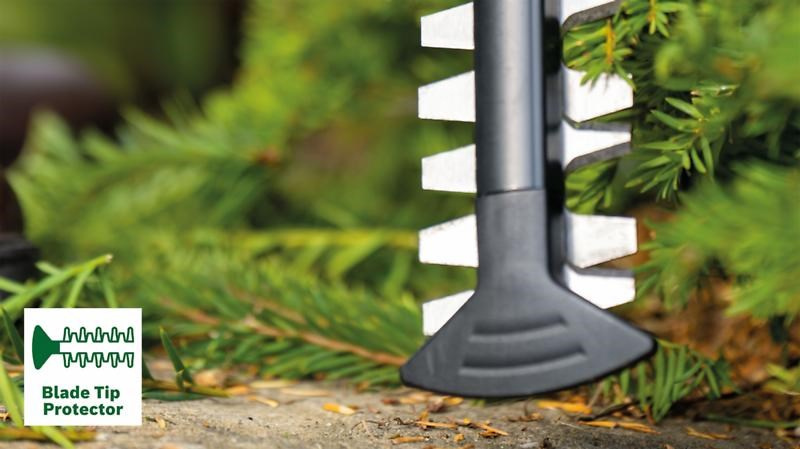 Vynikající výkon: Silný motor a rozestup nožů 16 mm umožňuje potřebnou sílu pro stříhání mladších, resp. menších až středně velkých živých plotů.
