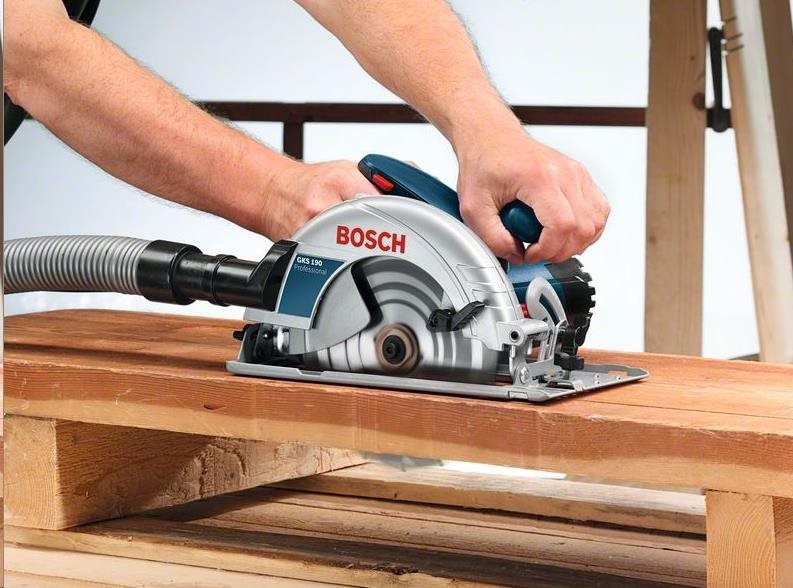 Ruční okružní pila BOSCH GKS 190 Professional pro rychlé a všestranné každodenní používání. Popis: Výkonný motor 1 400 W zajišťuje velkou průtažnou sílu při řezání jakéhokoli druhu dřeva Plechová základní deska a uzavřený výkyvný ochranný kryt z hliníkové slitiny lité pod tlakem odolají i tvrdým nárazům Nejnižší hmotnost v této třídě pro optimální manipulaci Optimalizované odvádění pilin a výkonné ofukování pro volný výhled na narýsovanou čáru a přesné vedení řezu Aretace vřetena Odsávání prachu Technická data: Příkon: 1.400 W Průměr pilového kotouče: 190 mm Průměr upínacího otvoru: 30 mm Hloubka řezu při 90°: 70 mm Hloubka řezu při 45°: 50 mm Otáčky naprázdno: 5 500 min-1 Napětí: 230V Hmotnost: 4,2 kg Standardní příslušenství: Pilový kotouč HM 190 mm, Imbusový klíč SW 5 (ET-č. 1 907 950 006), Paralelní doraz (1 608 190 007), Odsávací adaptér (1 619 P06 204).