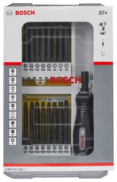 Bosch sada 37 kusů šroubovacích nástavců s rukojetí PH, PZ, SL, TH, TQ, H, TW, SP, R a držákem