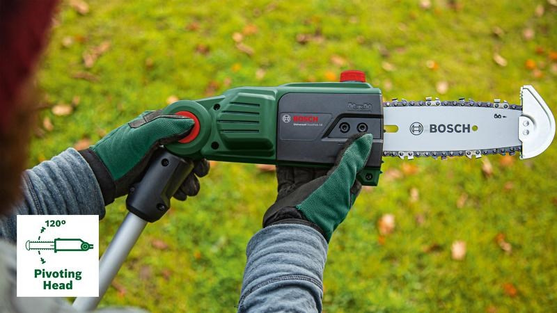 Bosch UniversalChainPole 18 akumulátorový teleskopický prořezávač větví, řetěz Oregon, automatické mazání, ochrana lišty