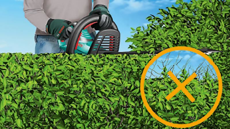 Řeže různé typy středně velkých živých plotů s větvemi až do tloušťky 20 mm