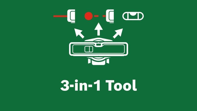 Kombinuje funkce vodováhy, bodového a čárového laseru v jednom zařízení