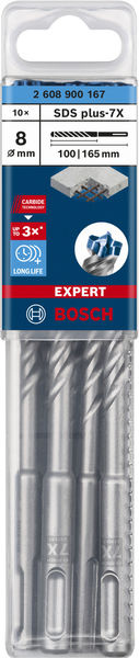 Bosch vrtáky do kladiv EXPERT SDS plus-7X, 8 × 100 × 165 mm, 10 ks